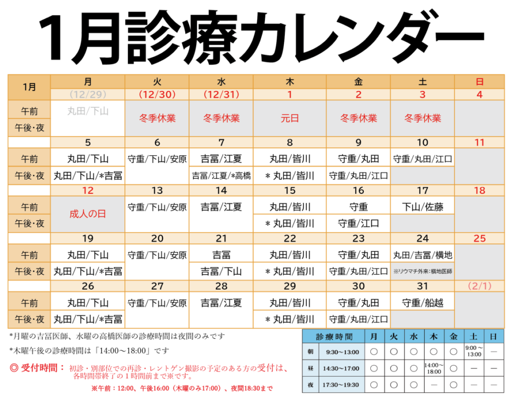 1月の診療カレンダー