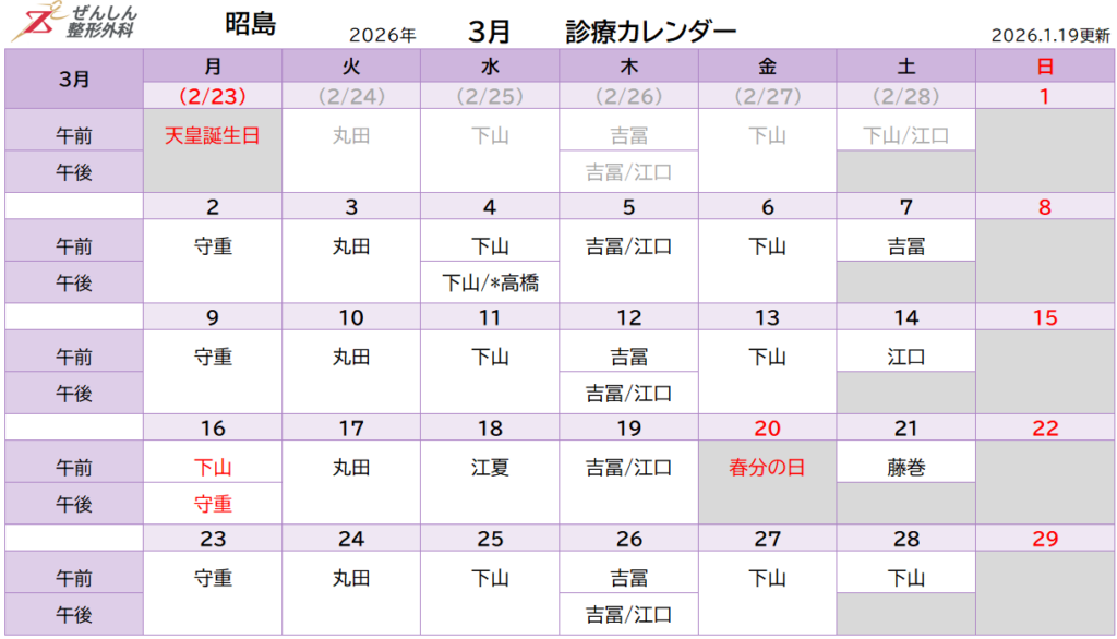 - 2026.02.17 3月16日(月)の午前中・守重医師の診察は休診となり下山医師が代診をいたします。ご注意ください。