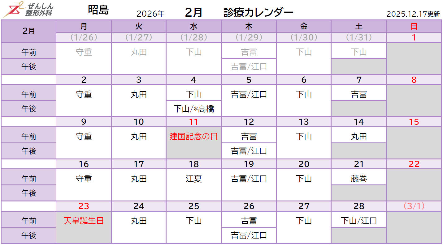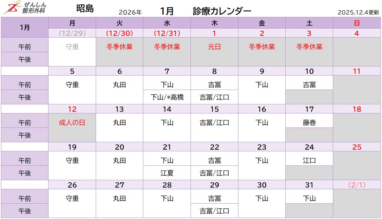 - 2025.12.22 年内最終日の12月29日(月)は、午前中のみ吉冨医師も診療を行います。