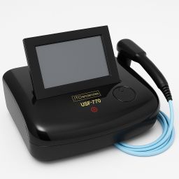 超音波の機器的な振動による温熱作用や非温熱作用を用いた物理療法機器です。当院では、組織温度の上昇に伴う柔軟性や伸張性の改善による関節可動域の拡大やスポーツ選手に多く見られる捻挫や肉離れなどの急性疾患の治療に利用しています。