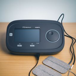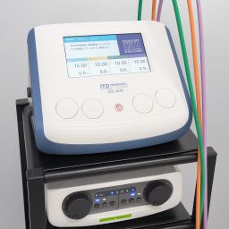 2つの周波の異なる電流を体内で交叉させ、その差による干渉波刺激を用いる機器です。筋肉の緊張緩和、血流促進、疼痛の緩和を目的に用います。
